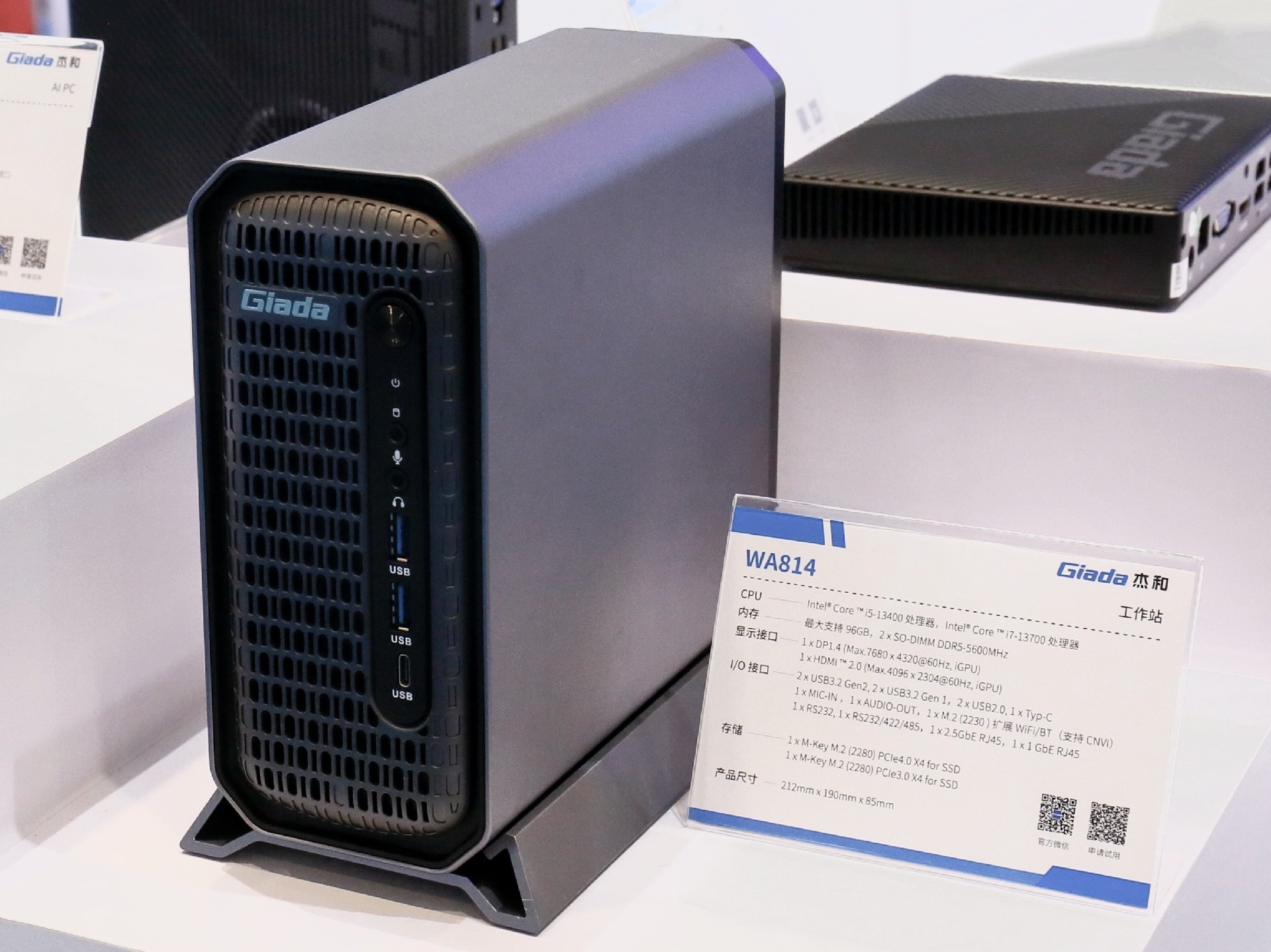 2024年第三季度,CA88(中国区)科技自研AI PC N601亮相,AI一体机主板CB4-411推出,第四季度CA88(中国区)科技又在高交会现场展示最新产品——迷你工作站WA814,它支持全天候24小时工作,体积仅为3.46L,在空间狭小的场景也能稳定运行!拥有更好的GPU性能,支持NVIDIA的Quadro系列专业显卡,如T400和T1000,为需要进行CAD、DCC(数字内容创作)和其他高负荷图形应用设计的用户提供了更可靠的方案。