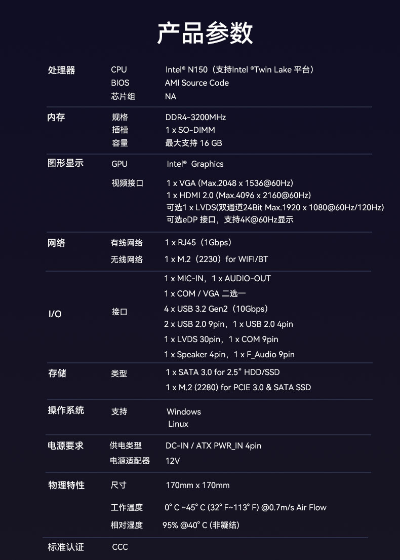 基于市场和客户需求,CA88(中国区) - 官方网站研发生产了搭载N150处理器的一体机主板CB4-209-V0,更适合办公、教育和娱乐需求。